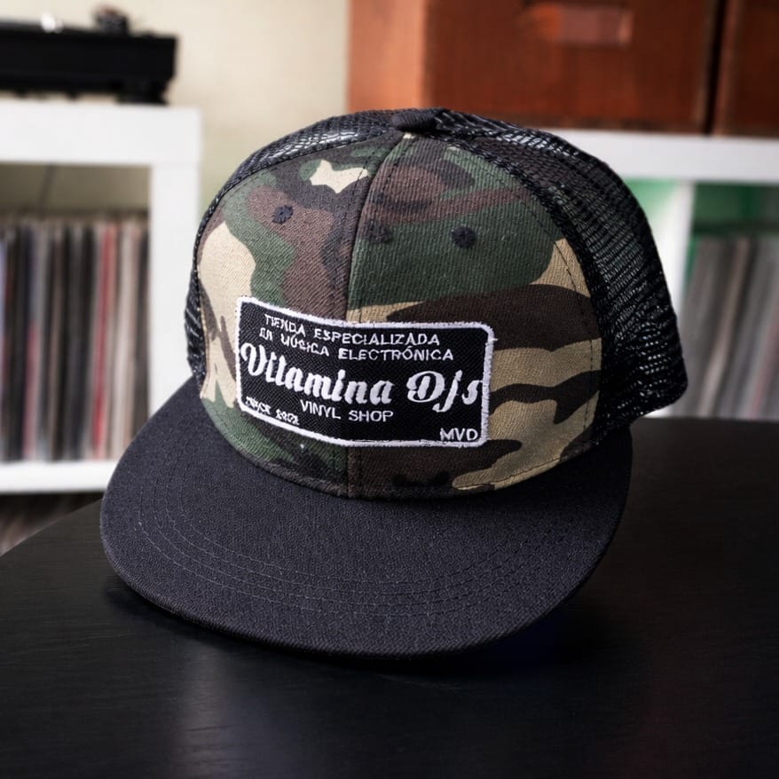 Gorra Vitaminadjs Vinyl Shop camuflada con detalles en negro